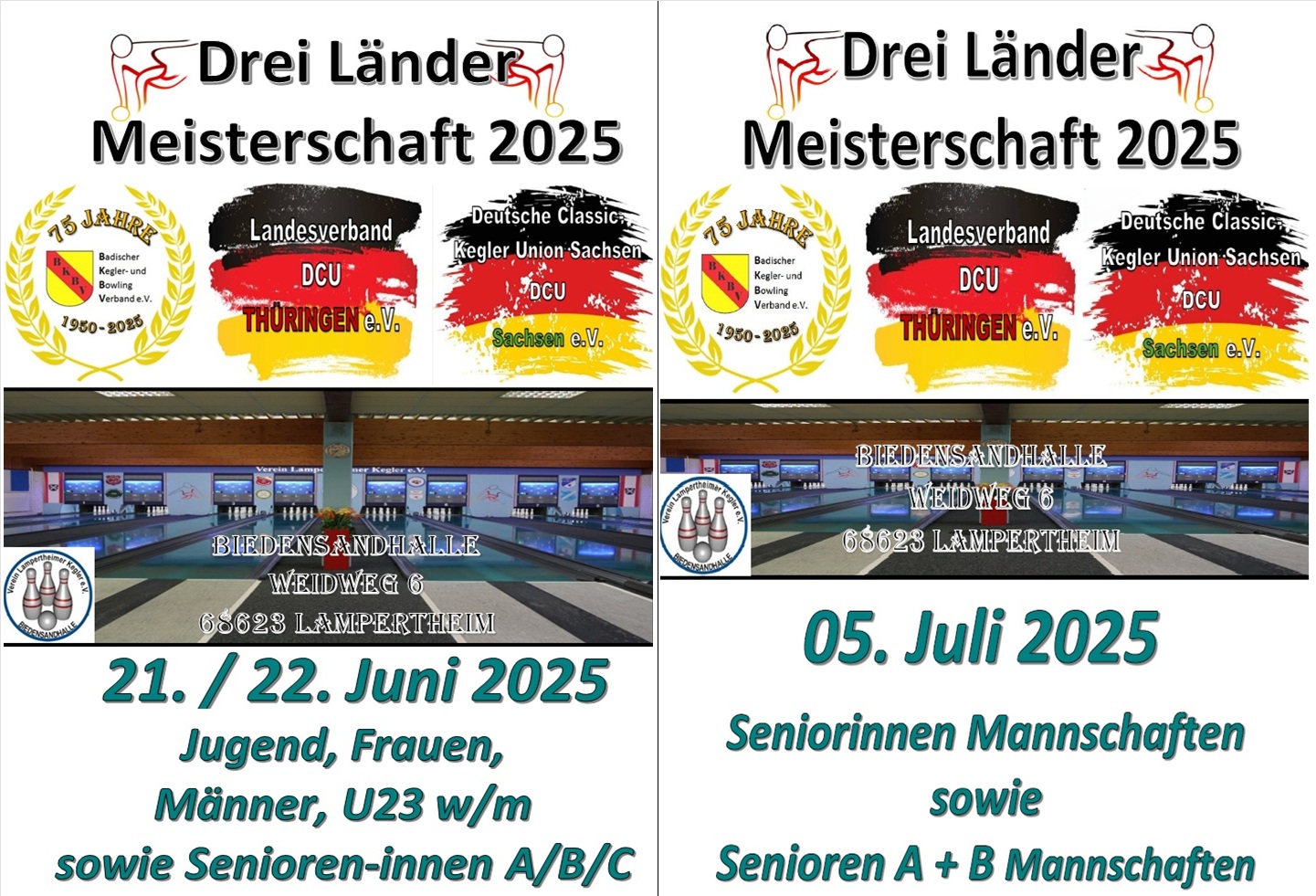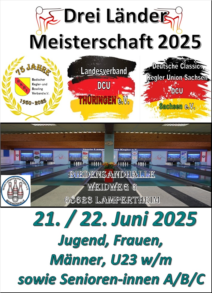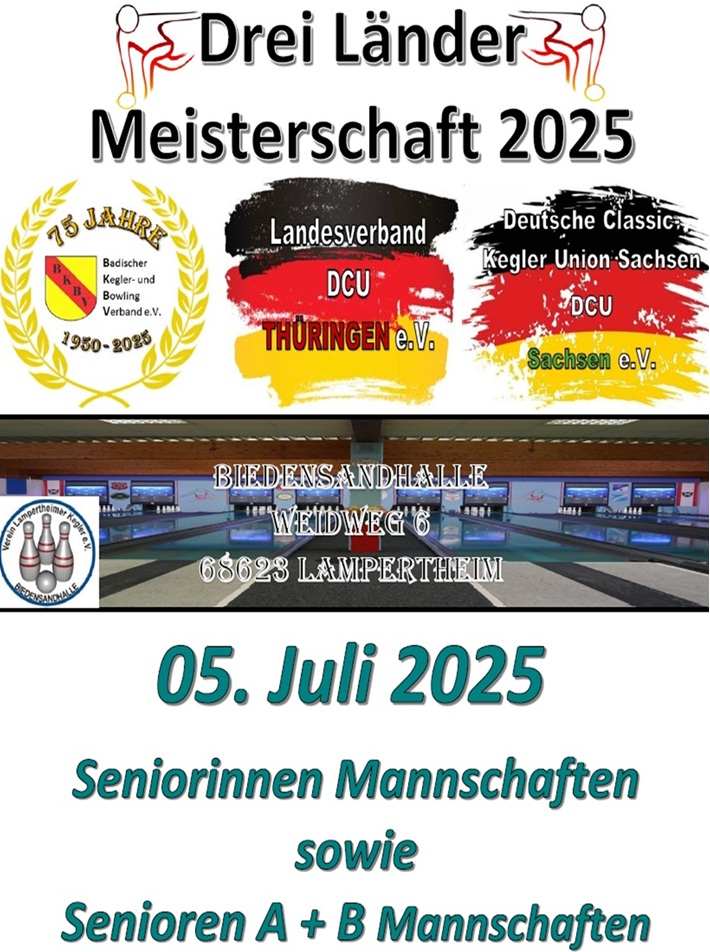 Aufgrund der für uns nicht nachzuvollziehenden Absage aller Deutschen Meisterschaften 2025, haben drei Länder (Baden, Thüringen und Sachsen) entschieden, für Ihre Mitglieder eigene Meisterschaften im Einzel als auch im Mannschaftswettbewerb in Eigenregie durchzuführen. Die beiden Termine, die für die Deutschen Meisterschaften 2025 geplant und im Rahmenterminplan verankert sind, werden übernommen. Das Orgateam arbeitet unermüdlich, die Vorbereitungen sind weitestgehend abgeschlossen. Die